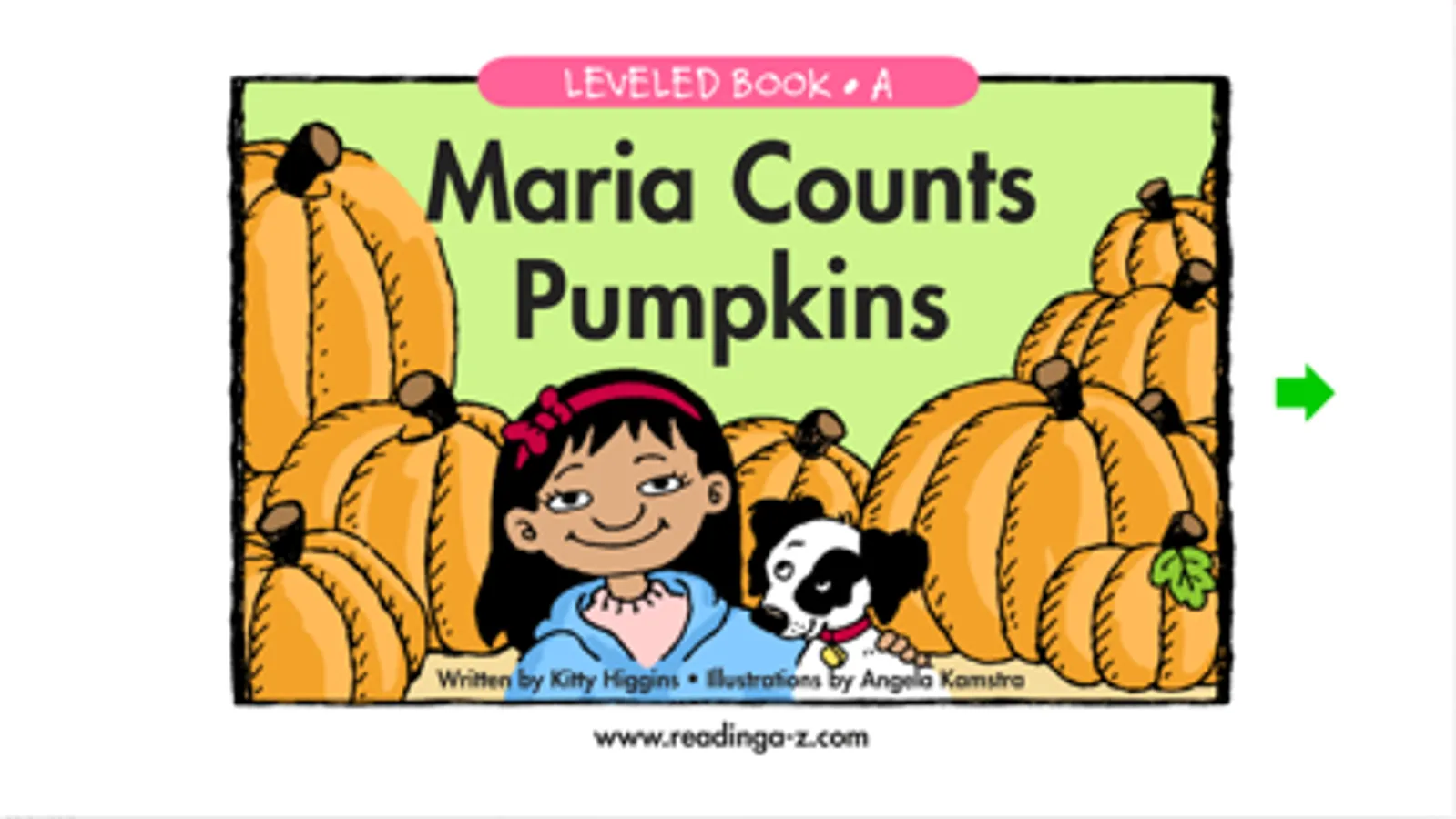 PRESCHOOL TO KINDERGARTEN readers will delight as they watch Maria sit on the stoop outside her apartment with her dog as seven relatives bring her pumpkins. The pumpkins crowd the dog and Maria off the stoop. The repeated sentence patterns and pictures help early readers retain meaning and read counting words. Discussion questions after the reading build interest and comprehension. Learner objectives: counting words, cause and effect.