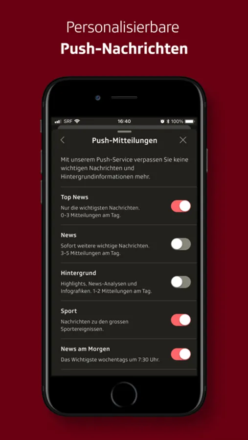 Abonnieren Sie Benachrichtigungen nach Ihren Vorlieben, so dass Sie auch mit wenigen Pushes top informiert bleiben. Wir bieten tägliche Briefings am Morgen und Abend, Top-News, Sport und Hintergründe.