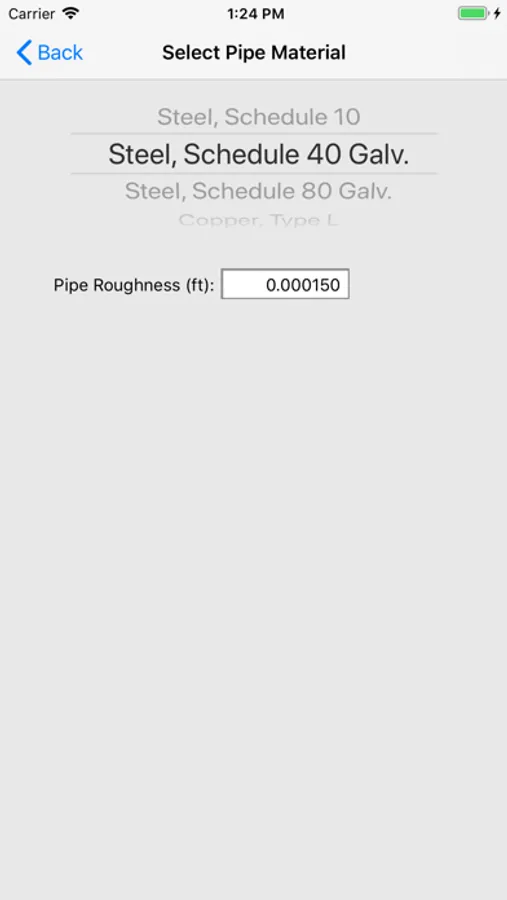 This application includes built-in pipe fitting equivalent length and nominal pipe sizing tables for a wide variety of pipe material types and diameters.