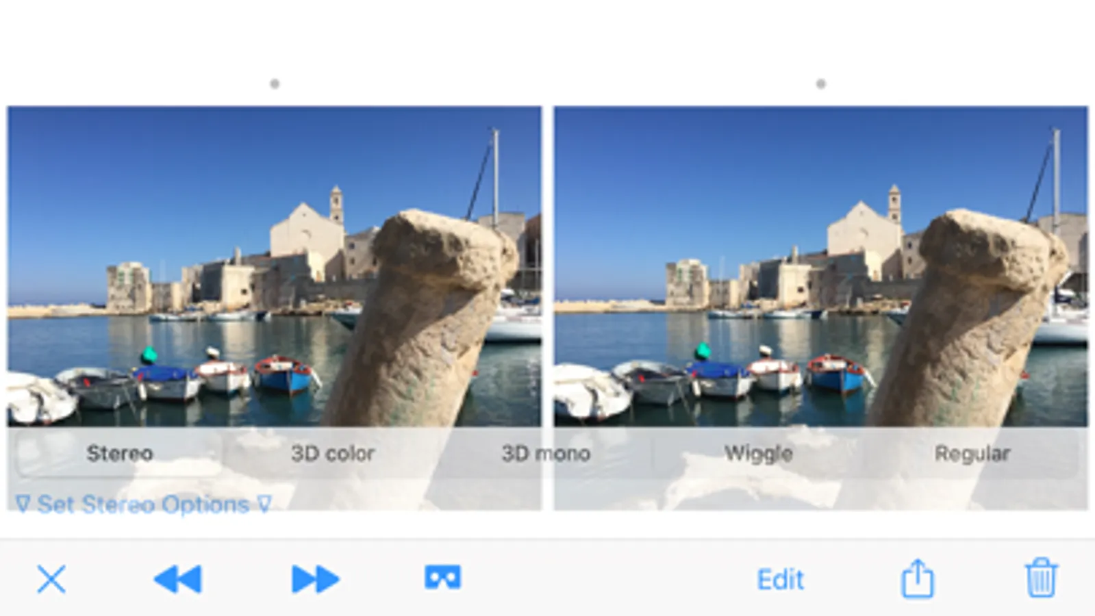 - Import 3D pictures coming from other sources (other cameras, apps, downloaded) to exploit all the app's features.