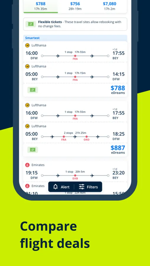 • Search flights with more than 600 airlines or travel agencies such as eDreams, Opodo, Expedia, Lastminute, Air France, Royal Air Maroc, Turkish Airlines, Corsair, British Airways, Emirates, Lufthansa, Qatar Airways, Air Caraïbes