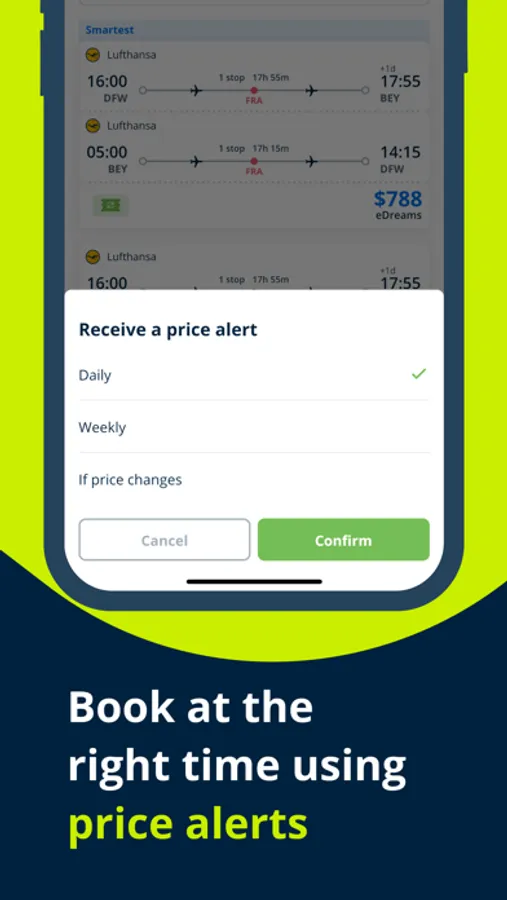• Create price alerts on your favorite destinations to be notified when the ticket price goes down.