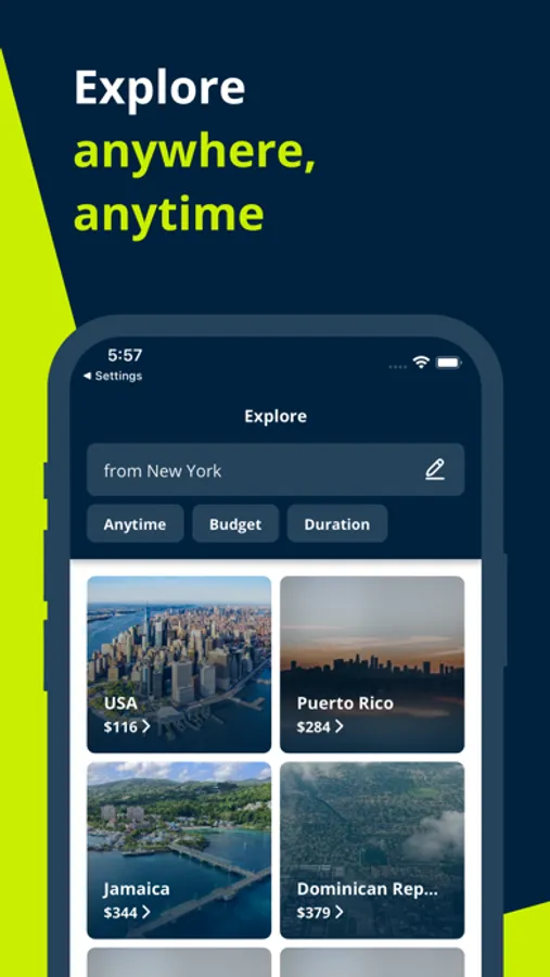 • You don’t know Where To Go? Get inspired with our ""Explore"" feature and find, according to your dates, budget and duration of your trip, the best prices to fly anywhere in the world.
