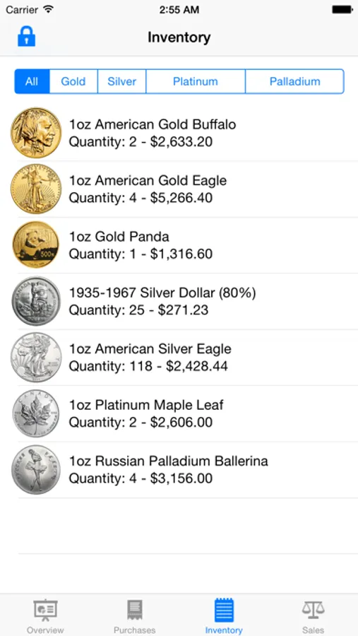 Use the Vault to catalog all of your precious metal purchases. Each coin and bar gets added individually so you can have a visual overview of your inventory. Gold Tracker calculates your gain/loss per item so that you can see exactly which investments have made you money. When it's time to sell, record your sale and Gold Tracker will keep a record of that, too.