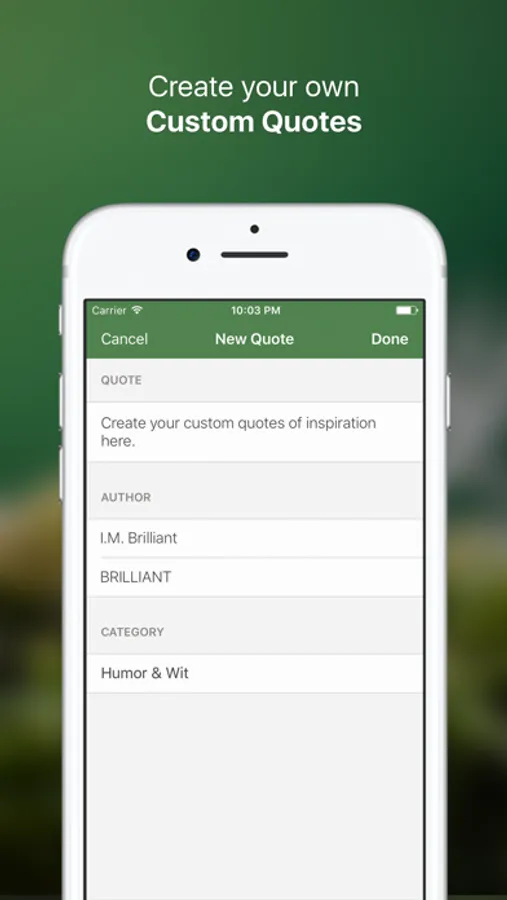 • Add your own custom quotes.