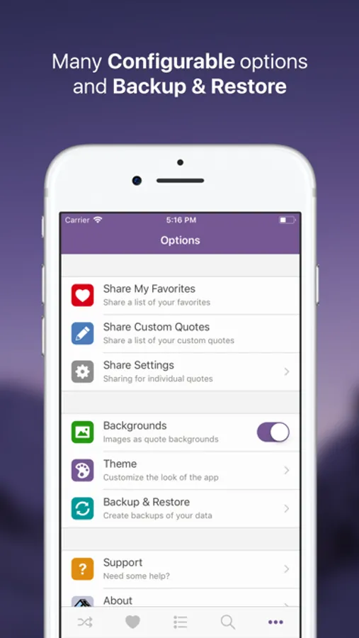 • Remotely back up & restore your custom quotes and favorite quotes.