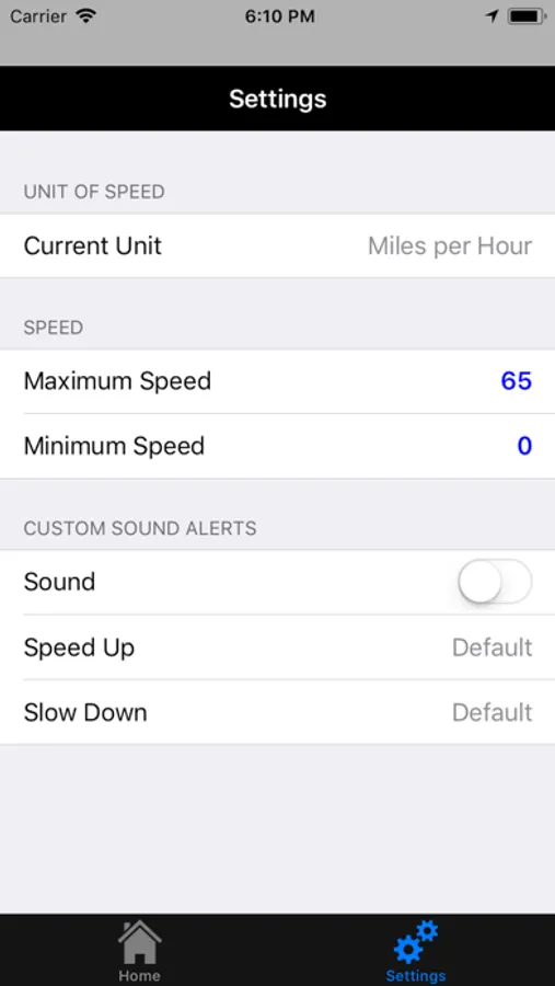 Simply set minimum and maximum speed limits, and the app will do the rest! Every time you are not in your range, your iPhone will sound an alarm that will command you to either "Speed Up," "Slow Down," or play one of your custom sounds from your iPod library. When the alarm is playing, the iPod will temporarily be paused, and it will continue after you have returned to your desired speed range.
