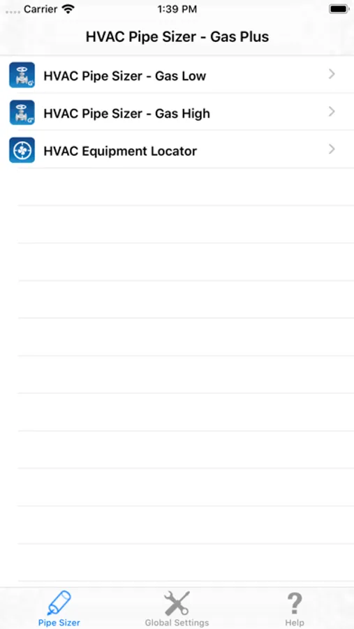 5. HVAC Pipe Sizer – Gas Low Pressure