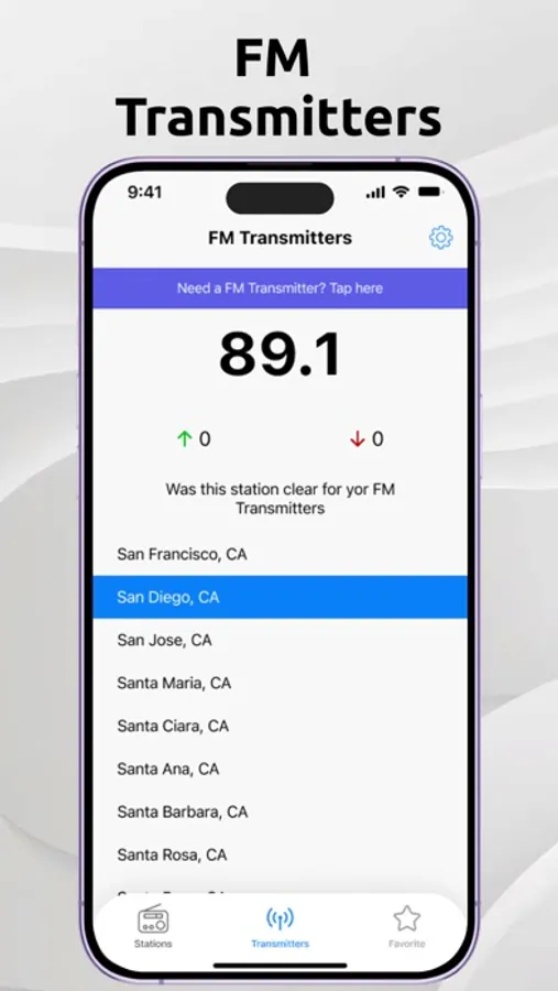 WELL NOW, there's an easy way to find exactly which station is the clearest for your FM Transmitter and you can constantly update your location so your music will always remain playing with no interruption.