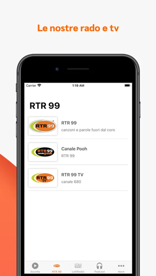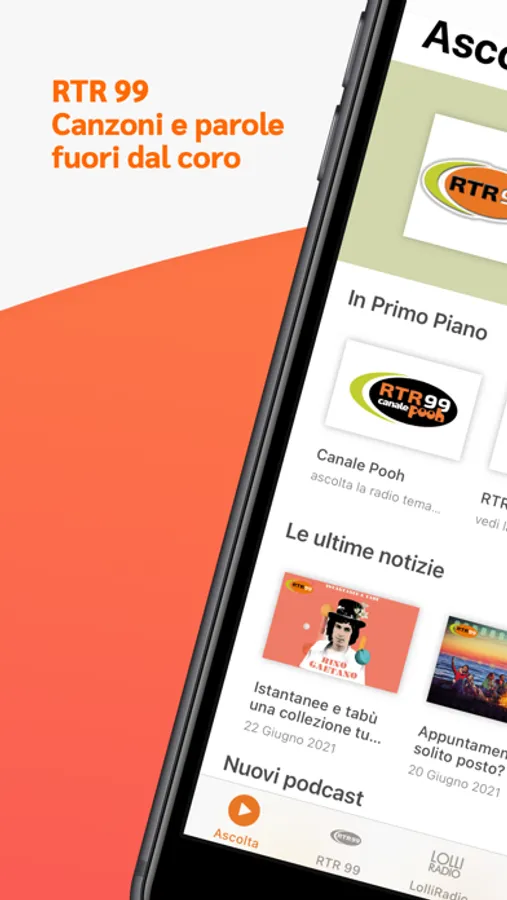 Questa nuova versione della App risolve tutti i problemi riscontrati dai nostri ascoltatori, e garantisce un flusso perfetto sia audio (per i due canali RTR 99 e CANALE POOH, dedicato esclusivamente alla storia dei Pooh) che video (RTR 99 TV, presente in digitale terrestre nel Lazio).