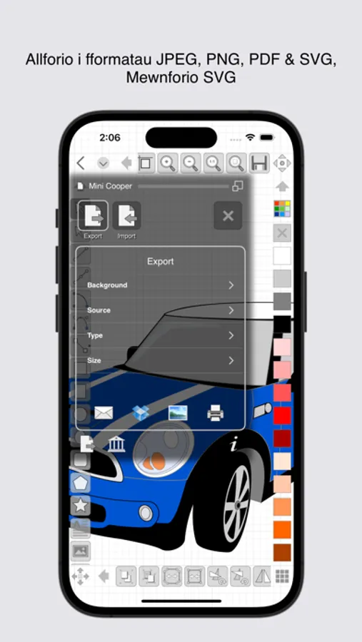 - Export designs to JPEG, PNG, PDF & SVG formats