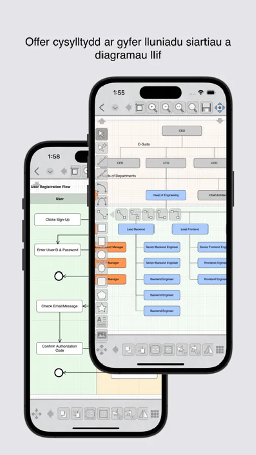 - Connector tools for drawing charts and flow diagrams
