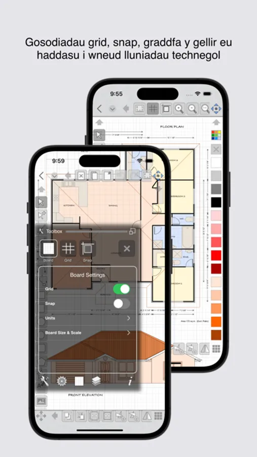 - A set of standard shapes for creating floor plans included
