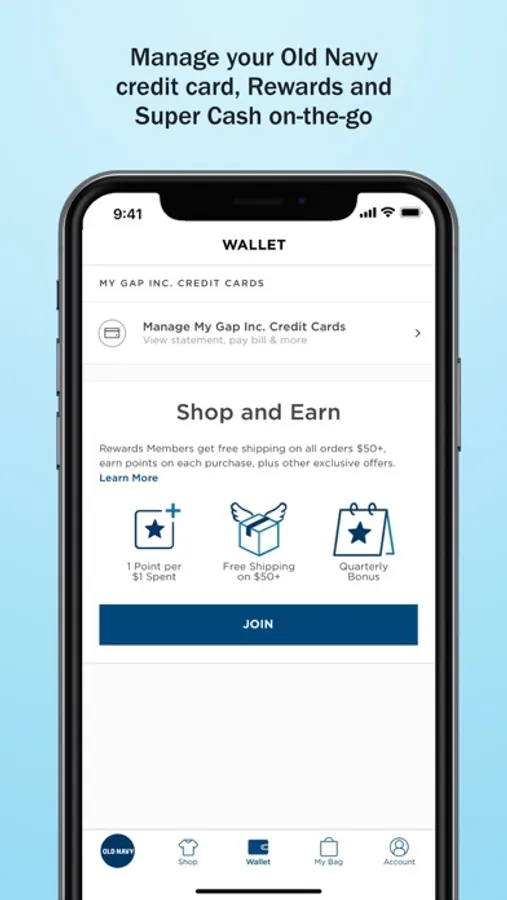 • Manage your Gap Inc. Credit Cards, earn points, check your balance, and pay your bill in a snap