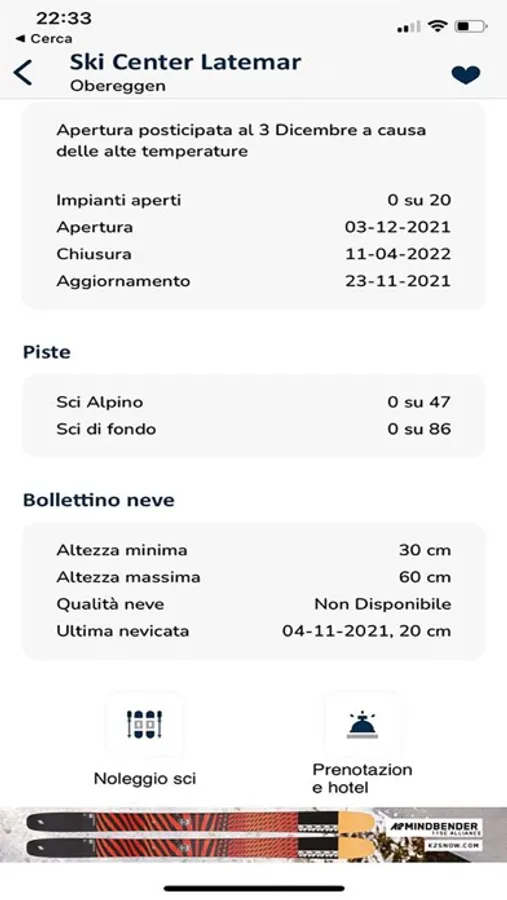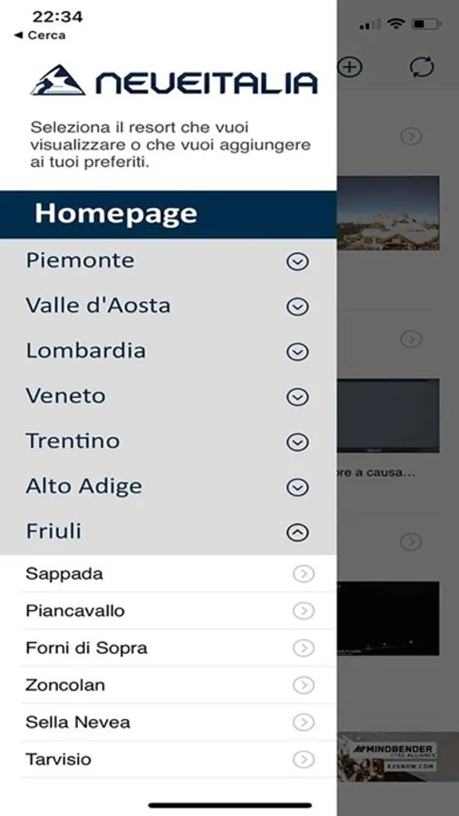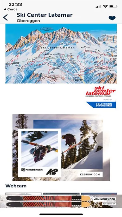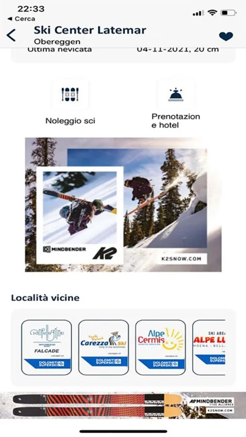 Among the new features of version 6, the ability to customize the homepage with your favorite ski areas. By activating the notifications, you are notified of the main snowfalls in the Alps and Apennines.