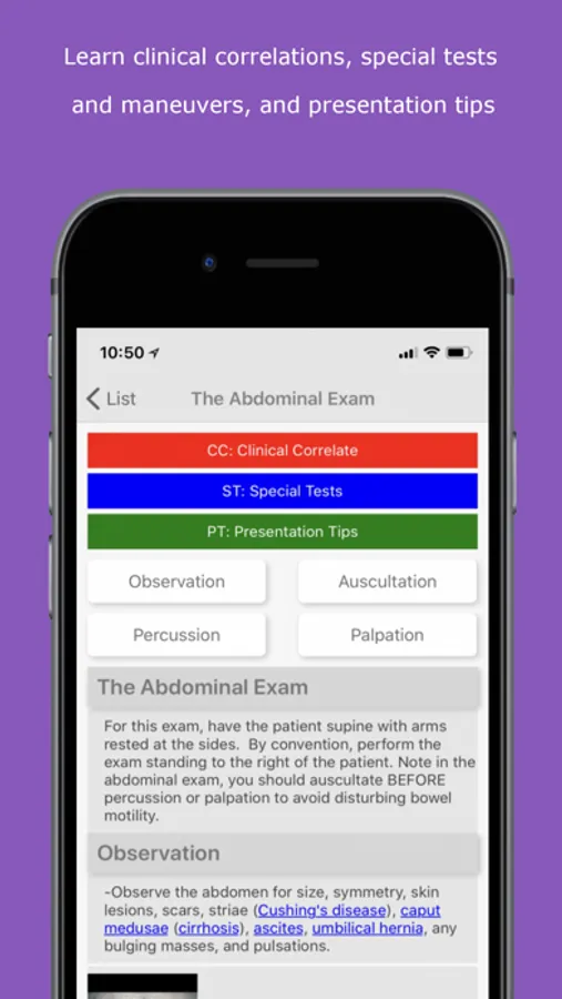“Great for medical students or anyone who might need to brush up on a comprehensive physical exam. Complete with pictures of normals and detailed instructions, you will never go into an OSCE or examine a patient without knowing what to do. Great app!”