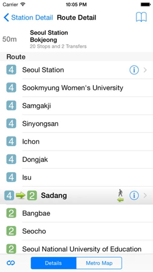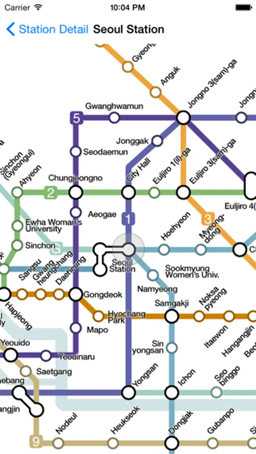 Seoul City Metro contains the highest resolution map available and it is completely interactive - allowing you to scroll, zoom and tap to any station on the network. Routes can also be displayed on the map at the tap of a button.