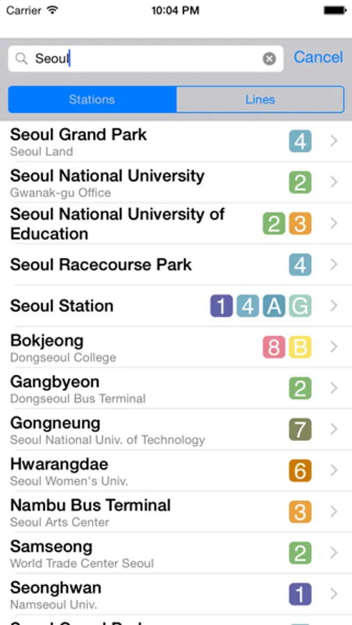 - Search station and line names in Korean and English.