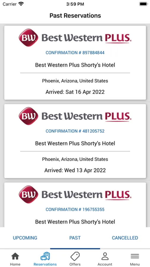 View any upcoming stays, or retrieve past reservations. Enjoy a hotel? Easily book another stay with a few simple clicks.