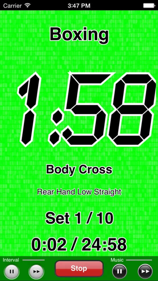 For example, if you are shadow boxing or hitting the heavy bag, you would normally think of a combination of punches and throw them. Instead of consciously coming up with the combination, UltraTrainer can tell you what punches to throw. It can call out 'JAB!', then a second later 'JAB CROSS!', then a second and a half later, 'CROSS HOOK!', until the interval ends.