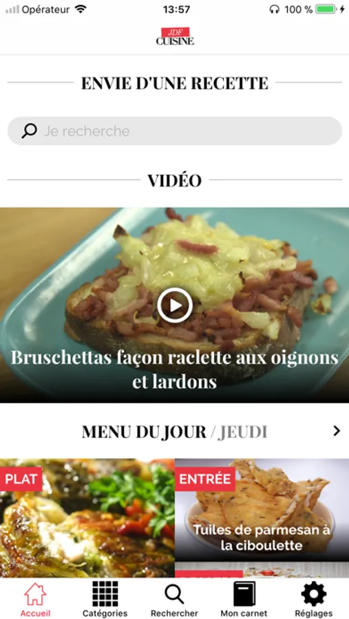 L’application Cuisine vous propose une cuisine du monde et de nos régions avec des grands classiques mais aussi des recettes originales.