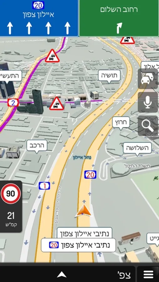 - תצוגה מציאותית של המפה בעזרת שלטי חוצות, מידע נתיבים , תצוגת צומת