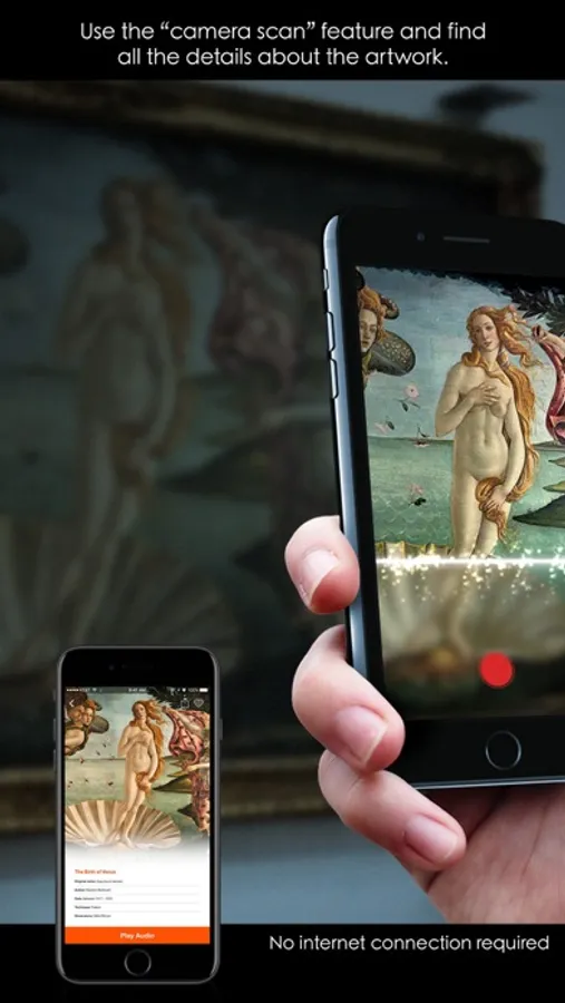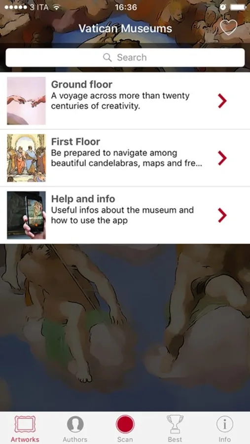 Download the Unofficial guide to the Vatican Museums App, launch it by tapping on "Scan" and frame the artwork as if you wanted to take a photo. The artwork is immediately recognized, just like magic, without the need for an internet connection.