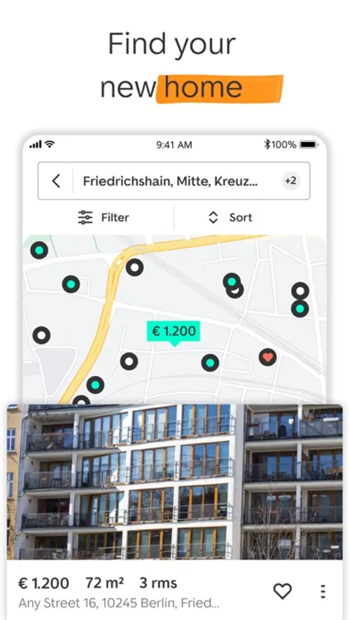 Search with many filter options (including apartment size, number of rooms, equipment criteria) near your current location, near a specific address or simply draw an area on the map.