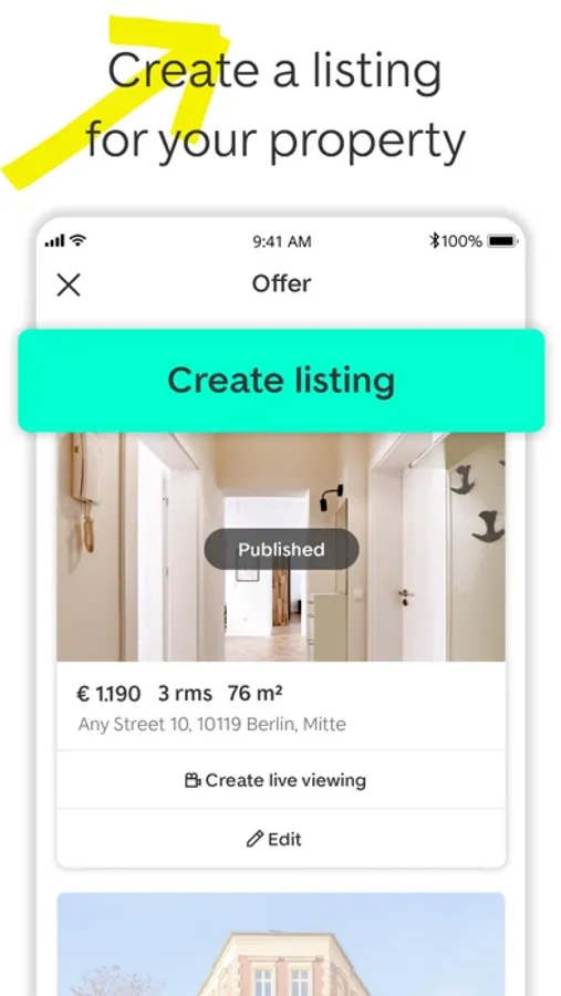 Or do you want to rent or sell a property? With the high reach of ImmoScout24, you can easily find the right tenants and buyers. Simply create a property ad in the app.