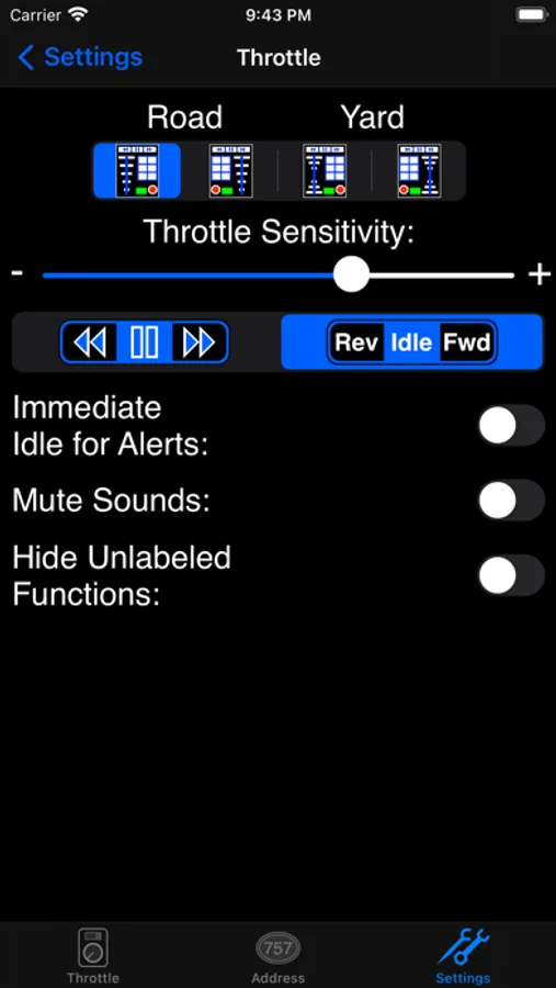 - Adjust sensitivity of the throttle slider