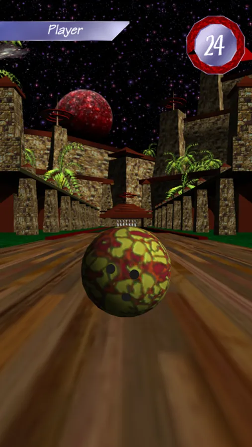 Swipe up along the screen to push the bowling ball forward, left and right to roll horizontally, down to push the ball back.