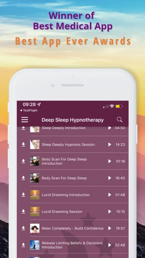* Integrates with health app to record the physiological benefits of self hypnosis