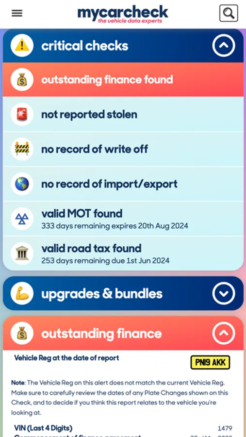 Free to download, My Car Check allows you to view the details of any UK registered car, van or motorcycle by searching using the registration number.
