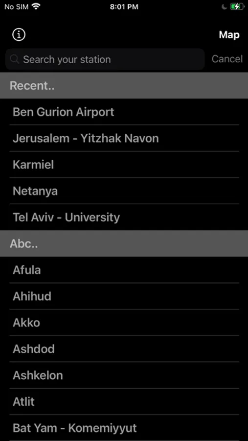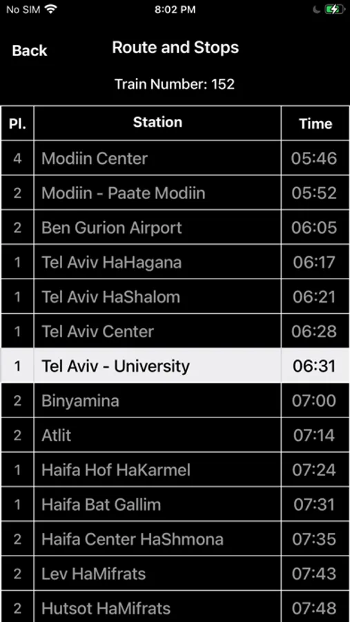 נגיעה נוספת ורואים מידע על כל התחנות בדרך.