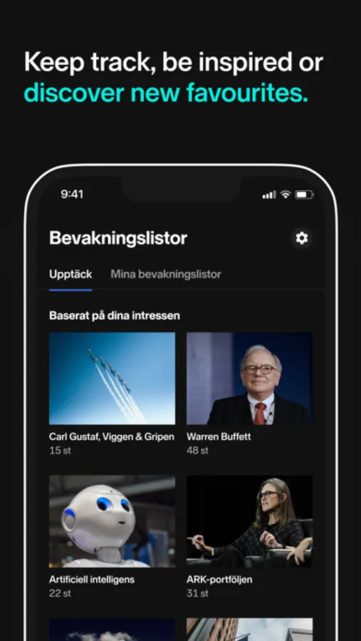 Find your next investment through our watchlists. Choose industries that interest you and then get lists of instruments within those themes. Use it as inspiration to find new investments or to keep an eye on exciting companies. You can also create your own watchlists.