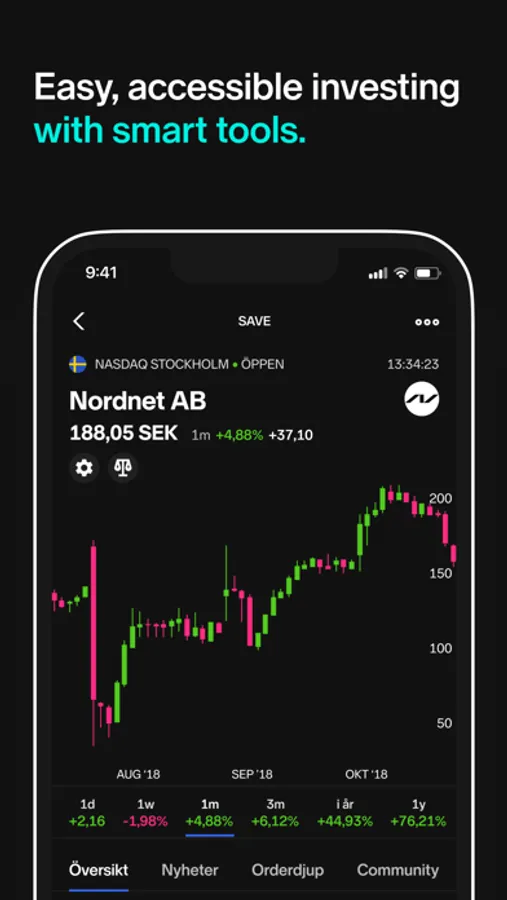With Nordnet's award-winning app, investing in stocks, funds, and ETFs is easier than ever. In the app you can track your progress and what is happening on the stock market. It's completely free to download and use the app.