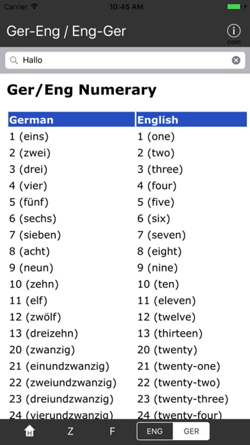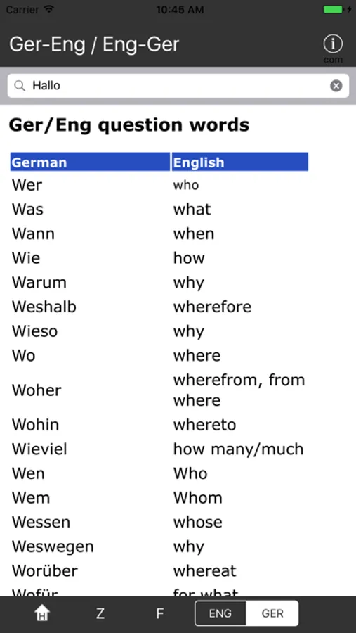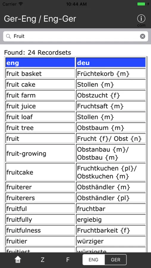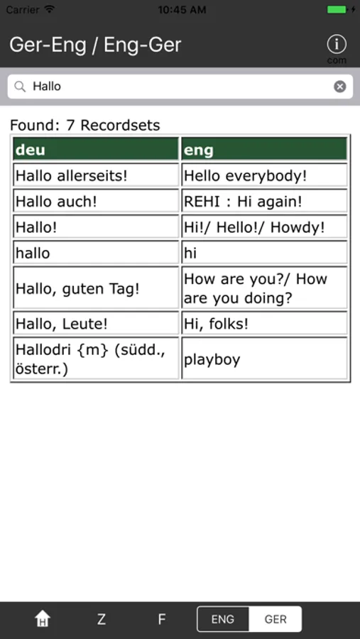 Dictionary German/English and English/German with more than 198.000 recordsets.