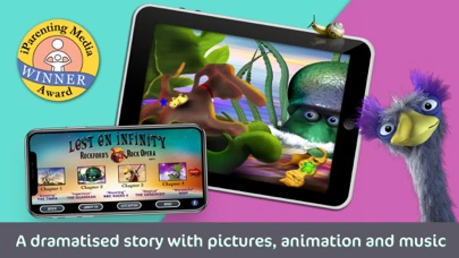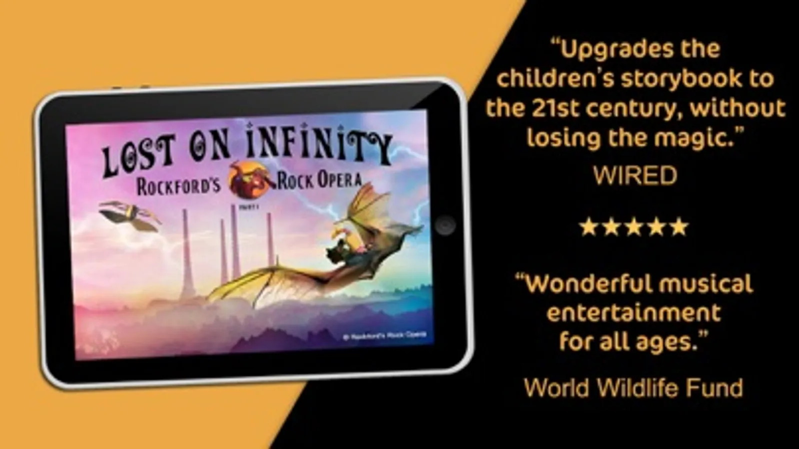 Lost on Infinity (previously known as Rockford's Rock Opera) is a dramatized audiobook story. A unique musical adventure. Hours of educational and thoughtful fun. A narrated audio story with pictures, videos, and fantastic music that's ideal for journeys, school runs, bedtimes, and for schools.
