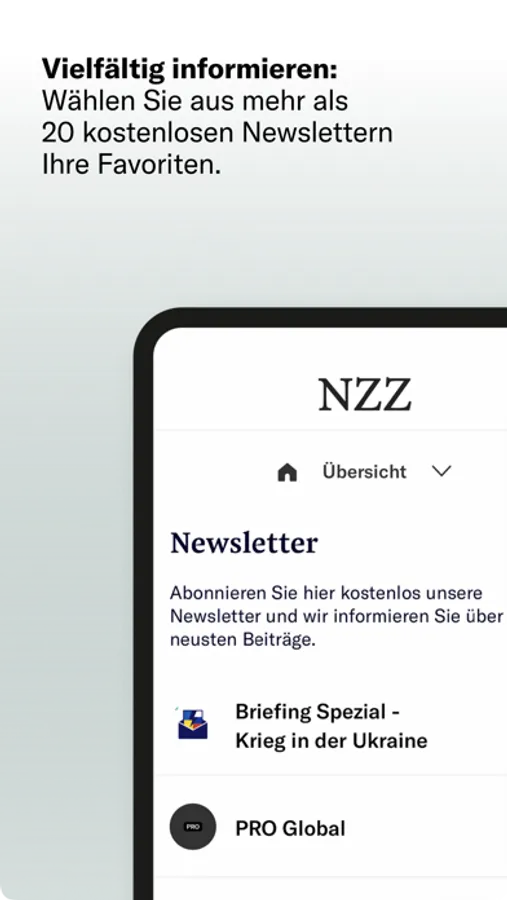 With the "NZZ Digital" subscription, you receive access to all digital content (excluding Pro articles) as well as an extensive range of information: Newsletters such as "NZZ Briefing" and "The Other View" (Der andere Blick), thematic newsletters, podcasts, videos, and infographics that convey complex issues in an easily understandable way.