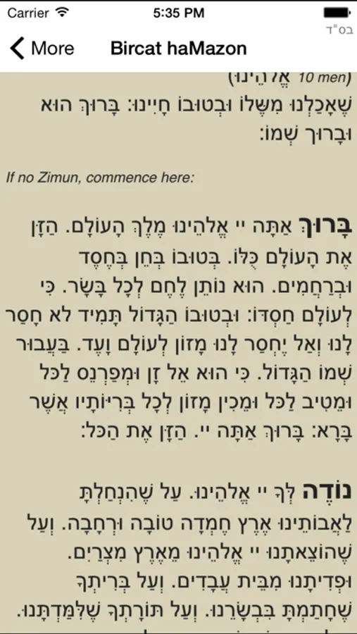 - Birkat haMazon, Kaddish, Hashkabot, Tehilim, Mincha, Arvit, Tefilat haDerech, Borei Nefashot
