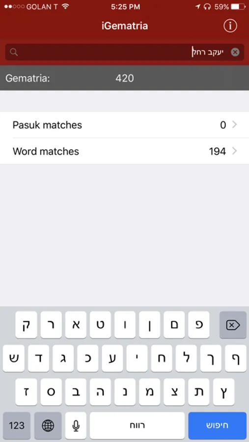 צריכים רעיון מקורי לנאום או בר/בת מצווה, חתונה או כל אירוע אחר ? רק הכניסו את שם החוגג והאפלקציה תמצא בשבילכם את כל המילים והפסוקים בתורה בעלי אותו ערך גימטריה של השם שהכנסתם.