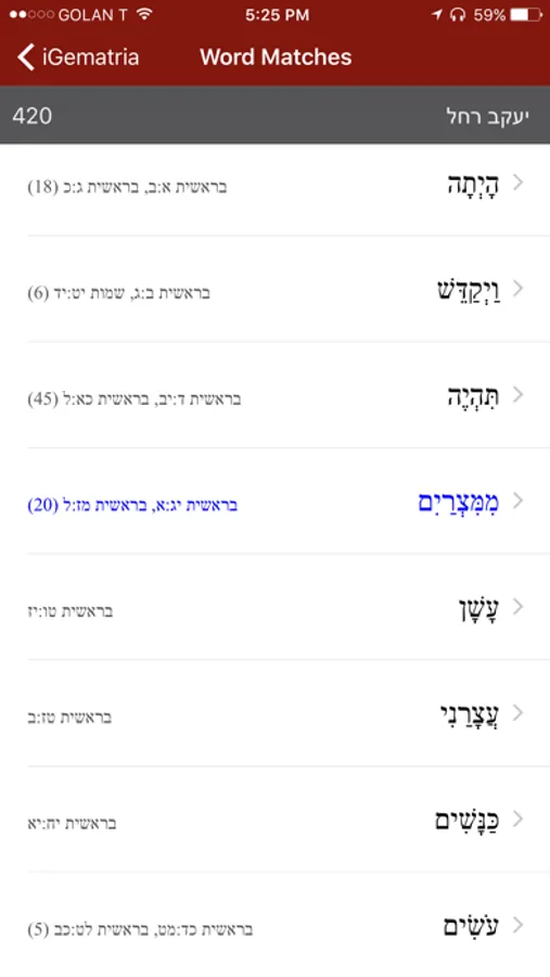 Need an original idea for a speech at a Bar/Bat Mitzvah, wedding or other Simcha? Just enter the Hebrew name of the celebrant, and iGematria will instantly find a Torah verse or word with the same Hebrew numerical value. If one of the word matches is found in the current week's Torah reading, it will be highlighted in blue.