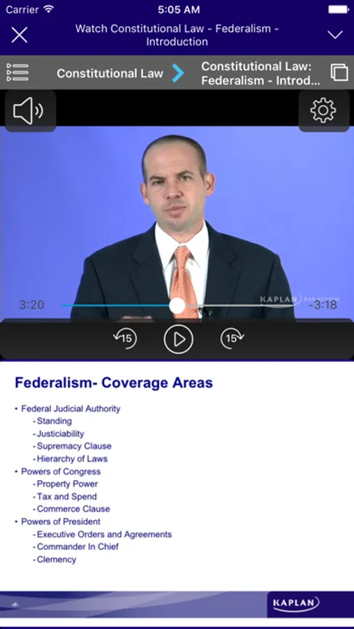 The Kaplan Bar Review is the ultimate preparation solution for both the multi-state and individual state components of the Bar Exam. We offer innovative Bar review that empowers you to personalize your study strategy and tactics. Our Personalized Study Plan, Lectures-On-Demand, Ask-An-Attorney Hotline, Unlimited Essay Grading, renowned QBank, and traditional outlines & printed materials are just some of the resources that will help you master the material that you need to pass the Bar.