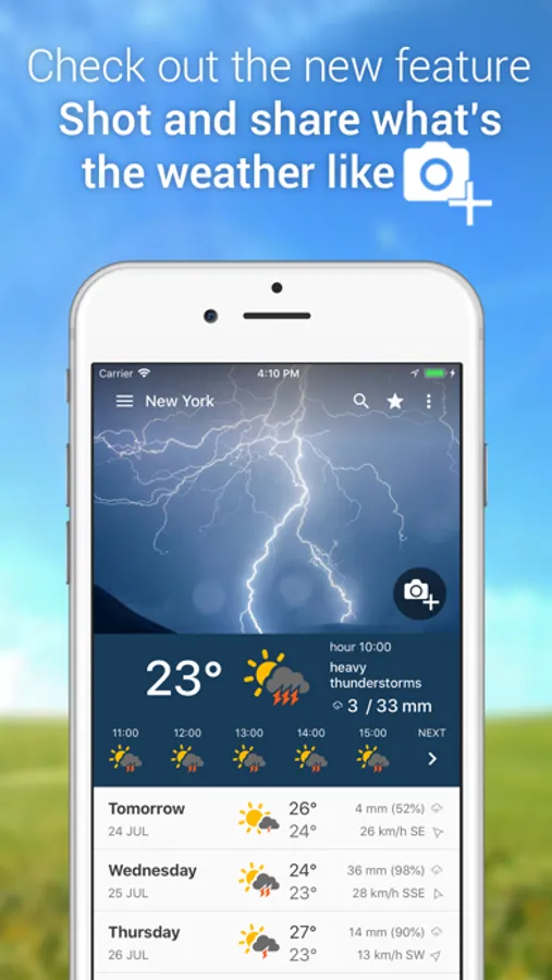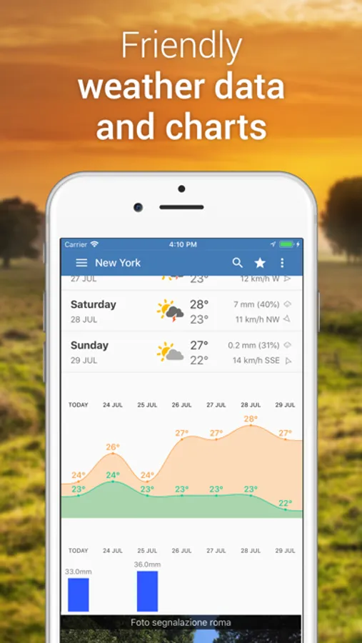 Download the brand new app for FREE, and find out lots of new stuff! Renewed and modern interface, charts that will help you read clearly the forecasts in your city. The brand new photo-reports feature: you can now report the weather in your city through a photo!