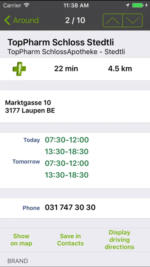 Practical information on over 1'700 pharmacies, covering more than 99% of all swiss pharmacies.