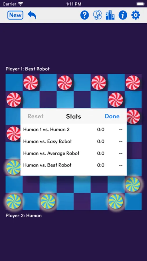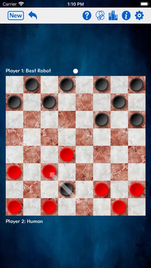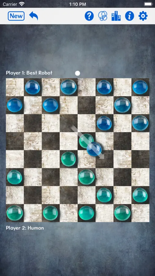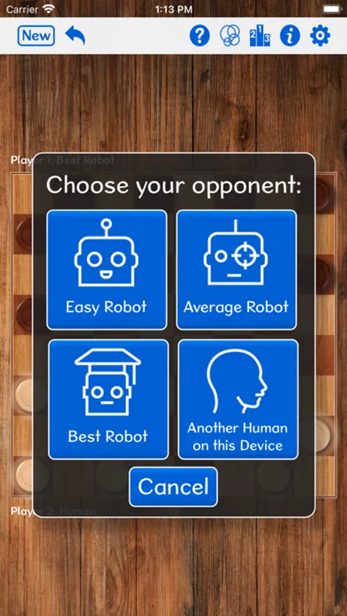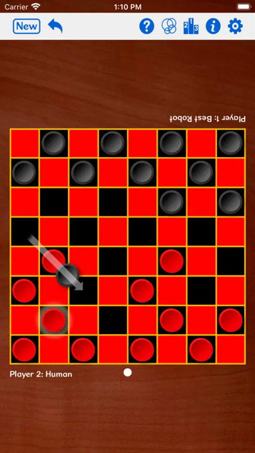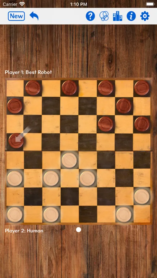 1 or 2 players, rules enforced, pieces glide into position. Play checkers with a friend or play against one of 3 robots on a beautiful wooden checkerboard, or alternatively choose the metal or glass themes. Pieces and squares subtly glow to show you all legal moves. To move, you can either slide a piece or tap a piece and a destination square. Tap the settings to make one side or the other a human player (or both), or just set both sides to computer players and watch the battle unfold.