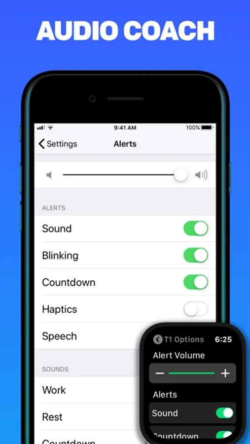 The clear speaking coach built into Tabata Pro will guide you through preparation, work, rest, cool down, and recovery intervals. Tabata Pro comes with carefully selected high-quality alert sounds that are clear to hear over your music.