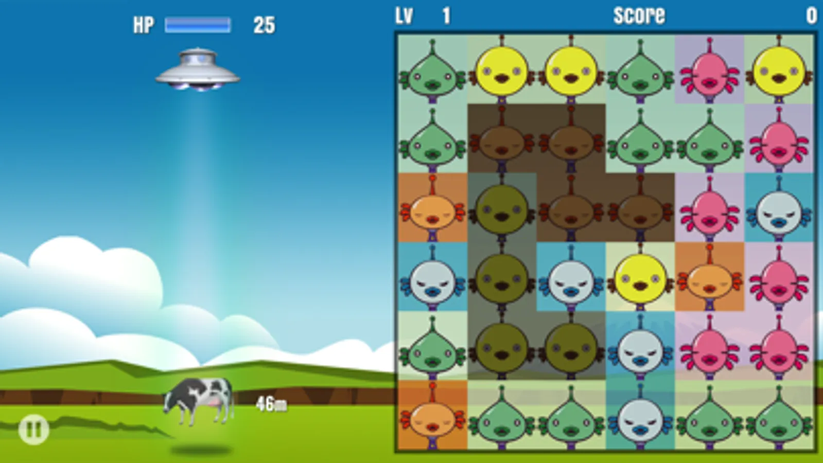 Connect aliens which has the same face and double tap to exterminate them. Then you can attack UFO.