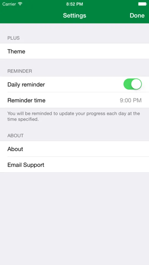 - Optional daily notification to remind you to keep your progress up to date