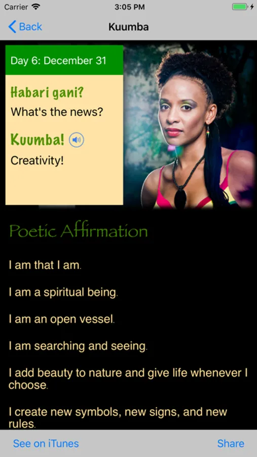 Need some help with thinking positive? This is the iPhone app companion to Venus Jones's "Kwanzaa: 7 Days, 7 Principles" album.
